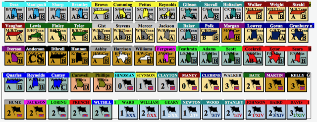 The unit and leaders characteristics, especially the morale ratings, are under discussion. Revisions have been suggested by the community of enthusuiasts at ConSimWorld. I have been monitoring that and have made modifications in response to what seems to be the emerging consensus. These revised unit rosters are a result of that discussion. (Revised values are shoen in red.) Also, revised Atlanta (only) game rules are listed, with fixes compatible with the revised rosters. Revised markers are expected to be posted sometime soon. (Thanks to all the good folks who have been and are helping with these revisions, including Keith Beason, Manuel Aguilar, Pat McCormick, Christine Schultz, and Thomas Prowell.)